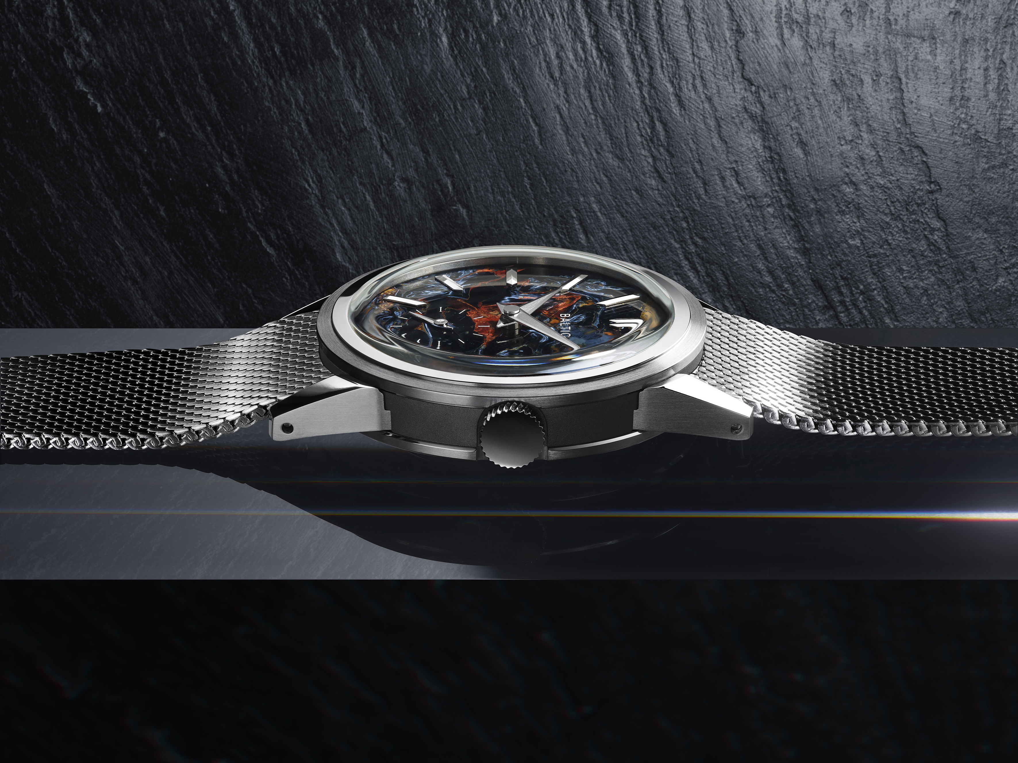 Afin de sublimer l’esthétique de la Prismic, nous avons décidé de l’accompagner d’un bracelet en acier inoxydable tressé et brossé. Ce Mesh épouse parfaitement le boîtier de la montre et la courbure du poignet grâce à son maillage fin et souple.